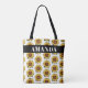 Bolsa Tote Cartoonish Yellow Custom Name Sunflower Patterno