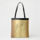 Este elegante saco de totas de casamento para a noiva personalizado apresenta um simples design de caligrafia do moderno roteiro de caligrafia negra que lê "Noiva" em um fundo de ouro falso com uma borda de cima de preto. Desenhada por Susan Coffey.