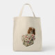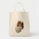 Um saco de tote decorado com um belo Rei Blenheim Charles Cavalier com uma lata vintage cheia de margaridas.