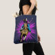 Garota cavalgando um cavalo correndo com um plano de fundo roxo no saco azul escuro de tote Veja mais itens ocidentais na Loja Rodeo Days.