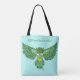 Um nó celta trabalha coruja com uma envergadura de asa aberta num pano de fundo de uma coleira.