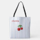 Bolsa Tote Cerejas Vermelhas em Bandas Azuis Personalizadas