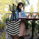 Artes refletoras negras e brancas que tornam a bolsa ainda mais atraente. Experimente esta bolsa de tote e partilhe os seus comentários.