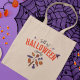 Um saco de tote fofo assustador com uma estética vintage do Dia das Bruxas que diz "Cheio de doce de Halloween" 🎃 Use o menu à direita para editar e escolher de uma variedade de tamanhos e estilos diferentes!