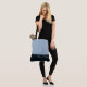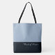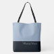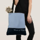 Esta encantadora bolsa tote fashion-forward mostra a palavra "Maid of Honor" em cor de texto branca sobre o mais profundo Azul Escuro da Meia-Noite com a parte superior da bolsa tote em Azul Antigo personalizado com texto em azul de Dia Chuvoso. Tem muito espaço para texto personalizado. Gráficos e texto estão em ambos os lados desta bolsa tote. Alça preta. Personalize ainda mais ou compre como mostrado.