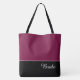 Esta linda bolsa tote com estilo mostra a palavra "Bride" em texto branco sobre preto com a parte superior da bolsa em Cassis personalizado. Tem muito espaço para texto personalizado. Gráficos e texto estão em ambos os lados desta bolsa tote. Alça preta. Personalize ainda mais ou compre como mostrado.