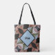 Um belo saco de tote desenhado com travesseiros florais bordados num padrão de retalhos. É uma bela ilusão que é tradicional e bófia. Padrões profundos, ricos, de várias cores, em cada lado do bolsa em padrões bonitos, acentuados com azul e preto. Personalize com um Nome ou Iniciais ou ambos em cada um dos lados. Esta imagem é uma fotografia original de JLW_PHOTOGRAPHY.