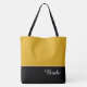 Esta linda bolsa tote com estilo mostra a palavra "Noiva" em cor de texto branca sobre preto com a parte superior da bolsa em Amarelo Suave personalizado. Tem muito espaço para texto personalizado. Gráficos e texto estão em ambos os lados desta bolsa. Alça preta. Personalize ainda mais ou compre como mostrado.
