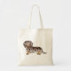 A ilustração original de um desenho animado de cabelo comprido e bonito, chocolate castanho e casaco de maçã bronzeada, cão da raça Dachshund.