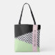 Bolsa Tote Cinza Zigzag, Cinza Chevron, Mint, Seu Nome