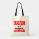 Excelente para você ou um amado. Divirta-se com esta declaração em uma bolsa de tote declarando "O amor é um feriado de um ano." Boa ideia para aniversário, Dia de os namorados, Dia de as mães ou feriado especial.