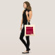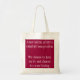 Um saco branco e cor-de-rosa brilhante com uma frase latina e a tradução em inglês, "nós escolhemos amar, não escolhemos parar de amar" do escritor romano e ator Publilius Syrus. Significa basicamente que, enquanto podemos escolher amar alguém e estar em uma relação com ele, não podemos nos impedir de cair do amor.
