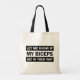Saco de tote de algodão com uma engraçada formação de ginástica, citação muscular de malhação em preto e branco - Deixe-me saber se meus biceps ficam no seu caminho.