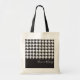 Este design apresenta um padrão clássico de som branco e preto. Combinada com o seu próprio texto personalizado, esta composição cria um chic moderno e um saco de tote único.
