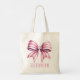 This preppy personalized tote bag features a beautiful coastal inspired pink and white striped bow on each side. Personalize the front and back with your choice of name or special text in matching pink. Fun for personalized gift bags.