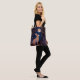 Um coelho gosta da lua de cheio na floresta. Esta é uma colaboração entre mim e a IA. Combina elementos da Arte Deco e da arte popular em azul e laranja.