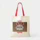 Uma fotografia de um coelho Páscoa fechado com um chão castanho nas costas que é feito de Copas com Assobiadores, olhos de barriga, Boca e Orelhas que está em um Saco de Tote.