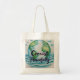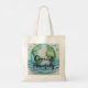 Este saco de totas apresenta um impressão de aquarela em azul e verde com a mensagem Coexistir Pacefully.