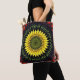 Um girassol automático vibrante está no centro deste saco de tote de cor brilhante.