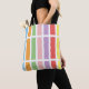 Padrão geométrico linear, retangular, listrado, de tons de arco-íris pastel azuis, laranja, verde, rosa, roxo, vermelho e amarelo.