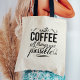 Com café ao seu lado, você pode conquistar o mundo! O saco de tote de tipografia bonita apresenta "Com café, todas as coisas são possíveis" em texto preto. Use o campo personalização opcional para adicionar um nome ou mensagem de sua escolha.