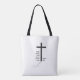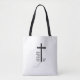 bolsa tote 16"x16" com cruz cristã e texto acompanhante