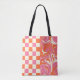 Checks and Swirls é para quem ama retrô, design de tendências e uma estética rosa e laranja. Esta design poderia fazer o presente perfeito para um Filho, filha, ou só para si se você ama a design retrô moderna. Sacos de Tote exibiam este poço de design e fariam um presente de excelente.