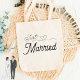 Saco de Tote de Casamento de recem casados. Fonte de script elegante com uma ilustração cardíaca bonita. Letra negra simples e doce.