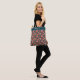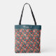 Coral vermelho-claro e delicadas flores cor-de-rosa com folhagem verde-florestal em um padrão retrorreflector de chinoiserie cria um belo saco de tote. Cor brilhante, muito feminina, muito na moda.