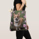Bolsa Tote Corgi Nas Rosas Rosa,