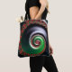 Este trabalho apresenta um padrão fractal robusto e complexo com uma estrutura espiral que parece estender-se infinitamente para dentro. As cores primárias são vermelho vívido e verde esbranquiçado, contrastando com um fundo escuro e profundo. Ao longo do caminho da espiral, formas frtais intrincadas e menores repetem-se, criando uma sensação de profundidade e movimento. Os elementos fractais vermelhos parecem formas orgânicas, quase como flores florescentes ou folhas enroladas. Os tons verdes gradualmente transitam para as brancas prateadas mais perto do centro, adicionando um efeito brilhante. No geral, a imagem evoca um sentimento de infinita complexidade e energia dinâmica.