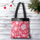 Costura Cruzada Parece Vermelho Design Tote Bag Floral Branco por © Cathy Thompson. Este é um design original do artista.