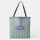Elegante periwinkle blue e yellow striped Tote Bag. O texto pode ser personalizado.