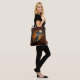 Uma coruja excelente corada em uma árvore no outono sob a luz de uma lua de cheio.