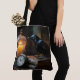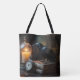 Saco de compras Corvo na Biblioteca. © Dark Heart Desires. Um corvo está empoleirado em alguns livros com uma vela e um relógio de bolso por perto.