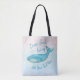 Esta sacola bonita mostra um desenho original de uma baleia azul fundo cor-de-rosa azul/coral da luz - da aguarela. O texto diz atualmente, "vela vinda afastado" com sala para seu nome ou o outro texto. Use o modelo para alterar facilmente o texto. Você pode igualmente personalizar/personaliza mais para mudar ou resize todo o texto e outros elementos.