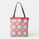O campo está de volta, com esta bolsa de tote a esporcionar um fundo de gingham vermelho e branco e grandes flores brancas, tipo margarida.