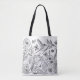 Um design detalhado de arte, com vários animais, pássaros e flores, está pronto para ser colorido com lápis de tecido em uma bolsa de tote, convidando criatividade e personalização. Crie sua bolsa exclusiva de temas de surf hoje!