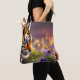Bolsa Tote Cubo De Tigre, Flores Roxas
