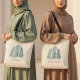 Saco de mão triptique em aquarela da Cúpula Verde da Mesquita do Profeta – Al Madinah Al Munawwarah – Cidade Luminosa – Presente de Ramadão, Eid e Peregrinação – Arte Islâmica.