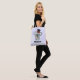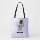Um saco de tote personalizado com um nome com uma ilustração de uma cinza fofa comendo algumas folhas de eucalipto, vestindo um chapéu preto de rico com fita vermelha. Colocado sobre um fundo de aquarela digital roxo claro.