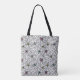 Padrão com ilustrações de margaridas pretas e brancas com centros coloridos. Personalize com o nome sobre o retângulo de cinza no topo.