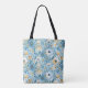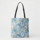 Bonito marfim e design abstrato de prado azul-margarida em um fundo azul macio.
