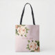 Tote para festa de casamento para todas as necessidades. Grande design floral vintage com desenho botânico. Belíssimos tons de rosa blush e um pincel de "Dama de Honra" com efeito de rosa dourado na parte de trás