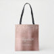Esta elegante bolsa de mão para damas de honra apresenta uma borda brilhante em rose gold. Adicione o nome dela em letra manuscrita branca e a palavra "damas de honra" ou outro título em fonte sans serif em um fundo de metal polido rose gold.