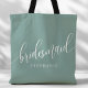 Bolsa Tote Damas de honra em Teal Desbotado com Letra Moderna