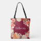 Fundo de cor personalizada e impressão geral com bordas florais em aquarela de pêssego pintado, verde oliva rosado. Damas de honra em letra cursiva de pincel em um lado e nome no verso. A cor do fundo é editável.