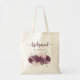 Esta bolsa de mão personalizada para damas de honra apresenta um buquê de aquarela de flores rosa bege e roxo claro aparadas com folhagens prateadas. A palavra "damas de honra" aparece em elegante letra cursiva roxa com floreios no início e no final. Adicione o nome dela em fonte roxa copperplate.