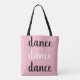 design de música diz dança em um simples design em preto e branco sobre fundo rosa.