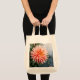 Entre as maravilhas da natureza, dahlias são uma incrível família de flores, tantas formas, cores e tamanhos. A fotografia original de MaeFlowers neste Tote Bag mostra uma flor espantosa no cheio, uma esfera de pétalas cor de pêssego, flutuando no ar.